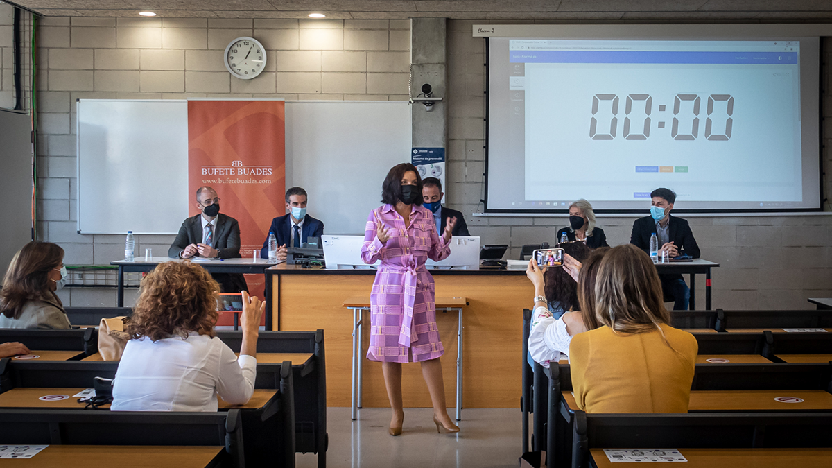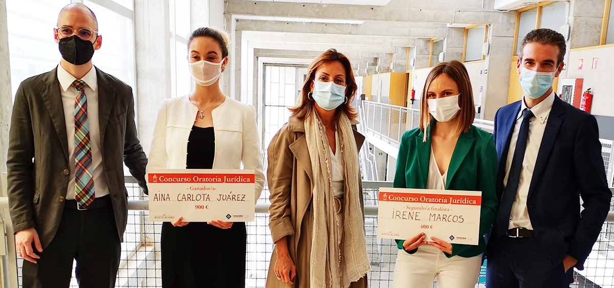 El jurado, compuesto por los profesores de la Facultad de Derecho de la UIB, Francisco Antonio Vaquer y José Luis Mateo, junto con los abogados de Bufete Buades, Miguel Reus y Mateo Juan, socio director y socio de la firma, respectivamente, y la especialista en oratoria, Xesca Vidal, se retiró a deliberar. La socia directora del despacho, Marta Rossell, ejerció de portavoz pronunciando el discurso de agradecimiento en nombre del bufete, alabando la fantástica organización del evento por parte de la Facultad de Derecho, cumpliendo escrupulosamente con las normas sanitarias.